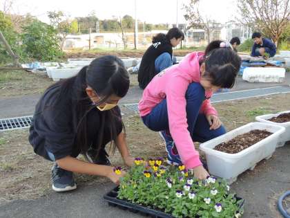 高井小学校は「花いっぱい運動」に参加しています。昨日10月23日の委員会活動の時間に,いただいた花の苗(パンジー・ビオラ・キンギョソウ・ノースポールなど)をプランターに植えました。これから水やりをするなどして,花でいっぱいの高井小学校になるよう活動していきます。