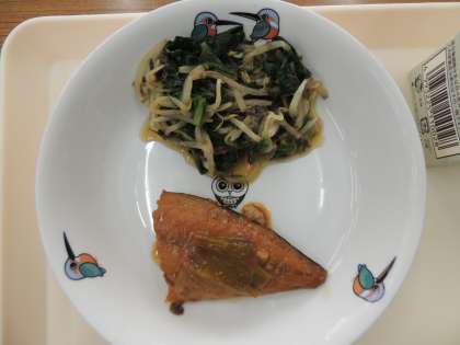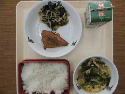 今日の献立は,ごはん,牛乳,鯖のみそ煮,のり酢和え,にらたま汁 です。