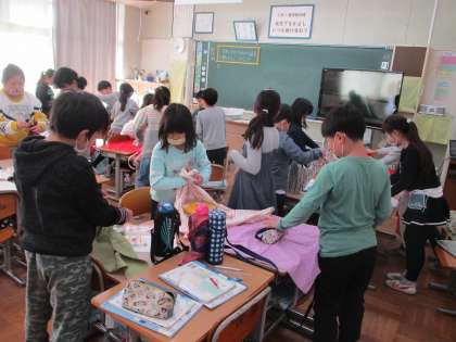 道徳で「ふろしき」という資料を使って、昔から使われてきた道具の良さを味わう学習をしました。