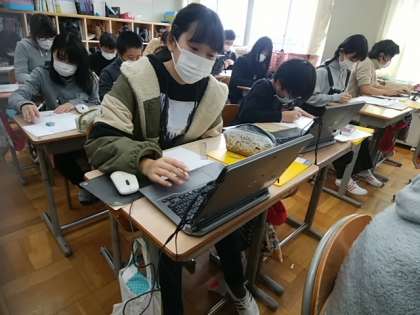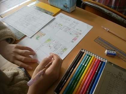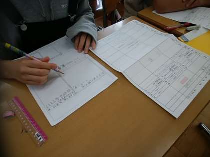今日の総合的な学習の時間は、外国について本やインターネットを活用して調べたことを、レポートにまとめる活動を行いました。読み手に分かりやすくなるよう、見出しやレイアウトを工夫して、作成に取り組んでいます。