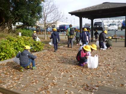 今日は環境NPOとりでのみなさんに協力していただき,ゆめみ野公園で落ち葉拾いをしました。色とりどりで,様々な形の落ち葉を組み合わせ,楽しく飾り付けをしました。