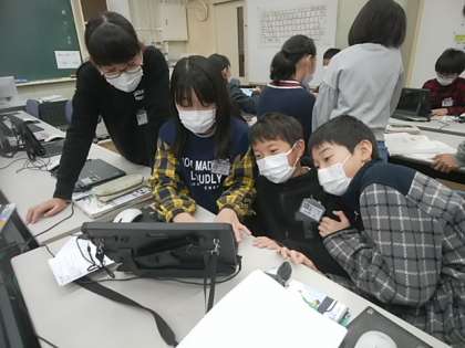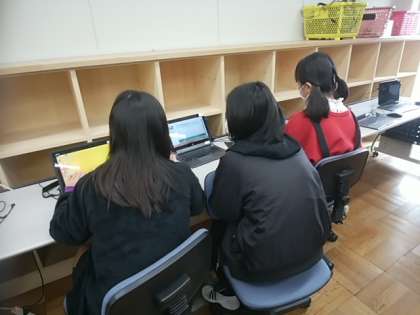 今日の国語は、プレゼンテーションづくりです。3〜4人のグループに分かれて、未来の取手市をどんな街にしたいか、プレゼンテーションの準備を行いました。