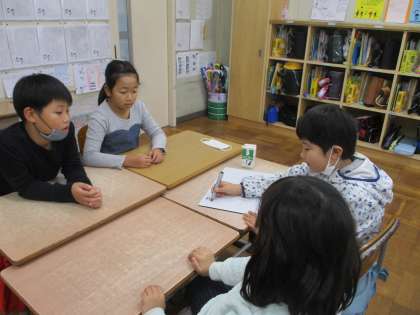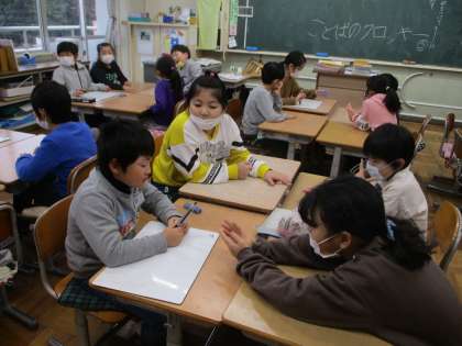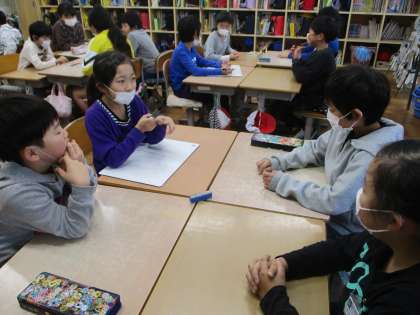 12/13 3年生 ことばのクロッキータイム 公開日 2019/12/13 更新日 2019/12/13 3年生の様子 12月13日(金) 今日のあじさいタイムはことばのクロッキーの時間です。今日は「話す」で、理由をつけて話す練習をしました。自分の意見の後、その理由を付け加えて話をします。テーマを決めて、グループでやりました。自分の考えを短くわかりやすく話す練習、友達の意見を聞く練習になりました。