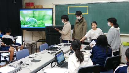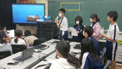 今日の国語の学習は、ブレゼンテーションの発表です。未来の取手市を、どんな街にしたいかグループに分かれて発表しました。どのグループも効果的な写真を提示し、聞き手に話しかけるように話すことがができました。クイズを入れて関心を引く工夫、パワーポイントのアニメーション機能も利用したすばらしい発表でした。