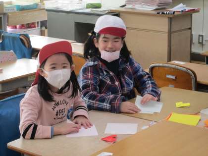 今日はあづま幼稚園との交流事業がありました。最初は、なわとびタイムで一緒になわとびを行い、その後1年生、5年生と交流しました。園児の素晴らしいあいさつや返事、話を聞く様子を見ていると、4月からがすごく楽しみになりました。