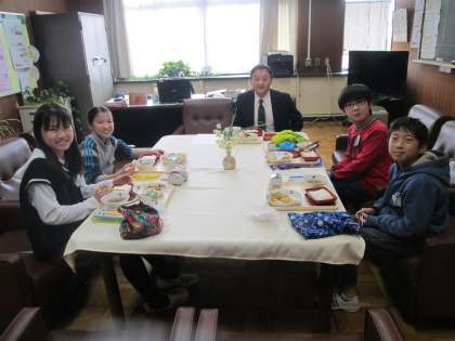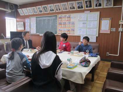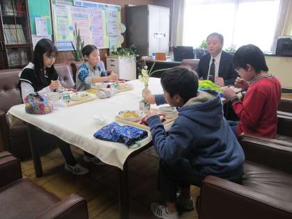今日から卒業生の校長室給食が始まりました。小学校での楽しい思い出や、中学校へ行ってからの目標を話してくれました。これからほぼ毎日行われます。