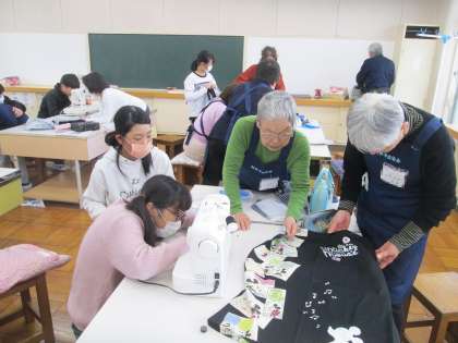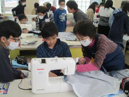 本日も新取手自治会の皆様においでいただき,家庭科でミシンの学習を行いました。慣れない手つきだった児童も,授業の終わり頃には上手にミシンを扱えるようになりました。エプロンの仕上がりが楽しみです。