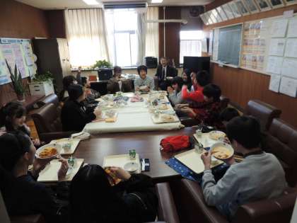 本日は,校長室で6年生12名が校長先生と,楽しく会話しながら食べました。