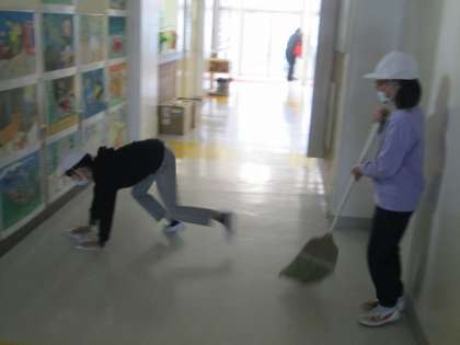清掃の様子です。1年生も自分たちだけできれいに清掃できるようになりました。みんな大きく成長した1年でした。