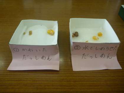 5年生の皆さん、暑い日が続いていますが、課題は進んでいますか。皆さんにも配付した、インゲンマメの観察を学校でも始めました。説明書をよく読んで、発芽の実験をしてみてください。実験の結果も更新していきますので、お楽しみに。