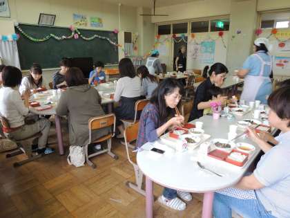 試食会のはじめに栄養士さんから給食についての講話をいただきました。