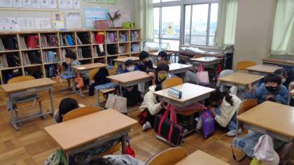 今日は不審者対策の避難訓練を実施しました。不審者による被害は,本来あってはならないことですが,万が一を考えての訓練です。2,3階は出入口から遠いため,バリケードを築き,不審者の意注意を惹かないように,目立たなくして対策をします。