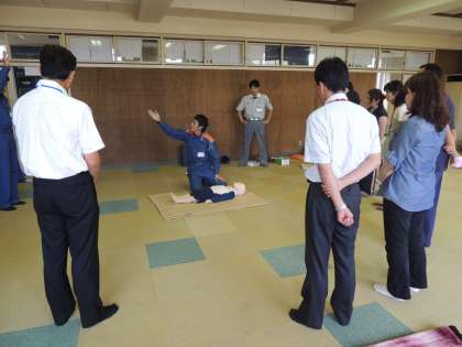 本日放課後、消防署の方を講師にお招きし、本校職員がAED講習会を行いました。