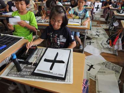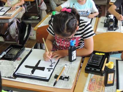 筆の向きととめ、はらいに気をつけ、一生懸命書きました。