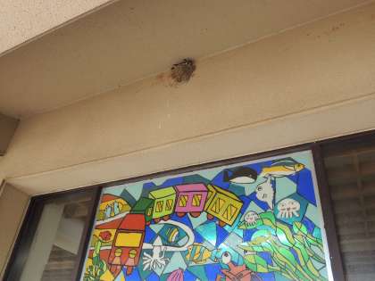昇降口にツバメが巣を作っています。