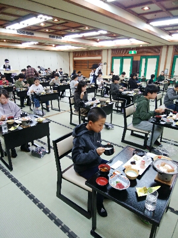 朝食の時間です。朝から美味しそうなメニューです。子どもたちは皆元気です。それではいただきます。