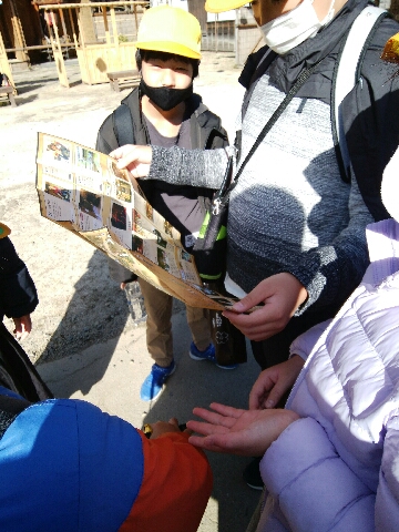 予定の見学場所を見て回り、グループで作戦タイム。時間を有効に使いたい子どもたちです。