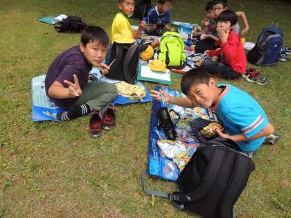 お弁当タイムはいつも、みんなとてもうれしそうです。