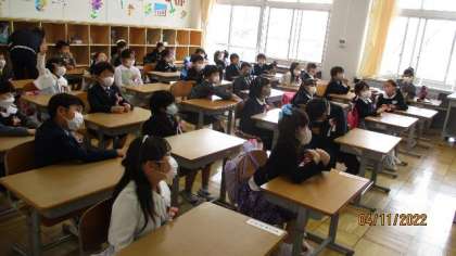 4月11日(月)には、入学式が行われました。104名のピカピカの新入生。しっかりした態度で式に臨んでいました。式の後、教室でも、きちんと話を聞いて頑張っていました。皆の笑顔がより輝けるよう、支援していきたいと思います。