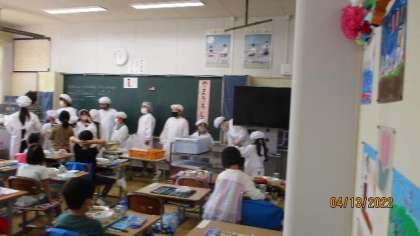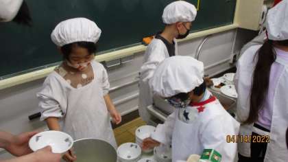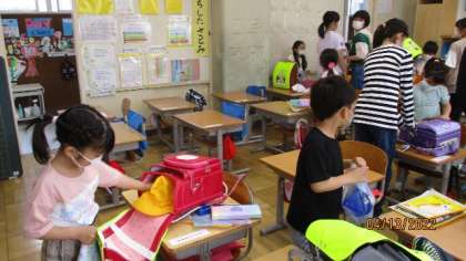 入学して1週間が経ちました。朝の支度や給食当番など、6年生に教えてもらいながら一生懸命がんばっています。少しずつ、小学校のペースをつかんできたようです。