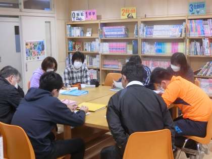 今日は職員研修を行っています。先生方が、二つの部会に分かれて熱心に話し合いをしています。教職員も研修を積み重ねて資質の向上を目指しています。先生方の真剣な表情がとても印象に残りました。