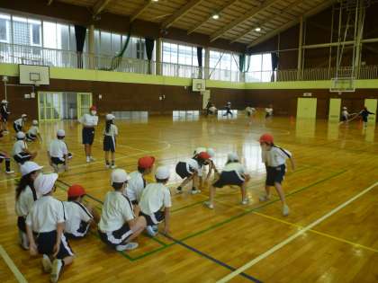 体育の授業では、元気いっぱいに、楽しく運動する姿が見られました。