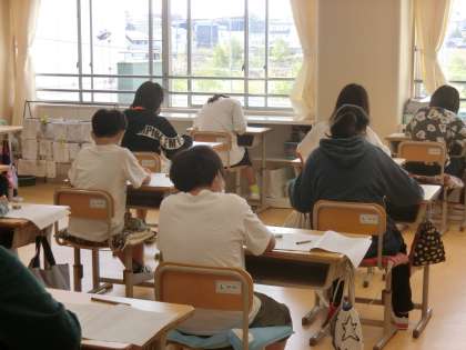 今日は6年生が全国学力・学習状況調査に挑戦しています。とても真剣な表情で試験に取り組んでいます。力の限り、がんばってほしいです。