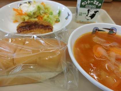 ミルクパン やさいコロッケ コールスロー にくだんごのトマトスープ