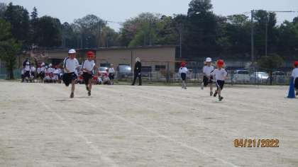 今、体育の時間には、スポーツテストの種目を練習しています。今週は、50メートル走を測定しました。「がんばれえ!」・・・友達の声援を受けて、最後まで力いっぱい走る子どもたちの姿は、とても頼もしかったです。