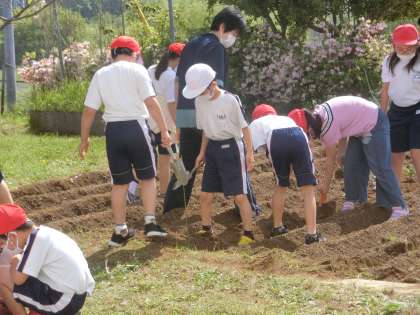 3年生の様子です。校舎裏にある畑を3年生の先生がきれいに整備してくださいました。