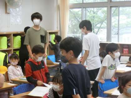 今朝の1年生の教室の様子です。6年生が1年生のお手伝いを続けてくれています。