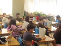外国語活動では、児童の積極的な参加が印象的でした。リズムのよい授業の展開に、子供たちも元気いっぱいこたえていました。