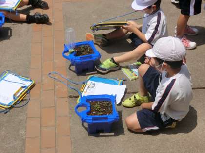 見て・触って・・・確かめていました。今日は天気もよく、絶好の観察日和です。