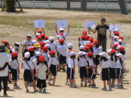 運動会当日は『玉入れ』を行います。運動会当日、1年生の子供たちのかわいらしくて、一生懸命な姿を楽しみにしていてください。