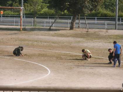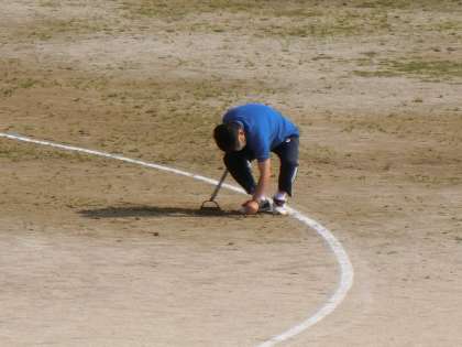 先生方が、雨の後、生えてきてしまったグランドの細かい草を自主的に取り除いてくれていました。細かい草なので、すべて手作業で行うしかありません。子供たちが活動する場を少しでもきれいにしたいという熱い思い。本当にありがたいですし、頭が下がります。