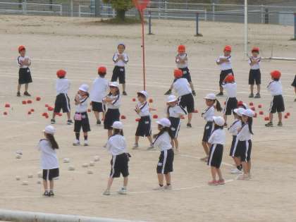 かわいらしい〜!(1年生) 公開日 2022/05/20 更新日 2022/05/20 児童の様子 運動会の練習の様子です。今日も団体種目「玉入れ」の練習をしています。とても上手になってきました。 何と言っても・・・ 玉を入れる前の、『ちぇっ ちぇっ こり』の踊りが可愛らしくて最高です! 本番の競技をお楽しみに・・・。必見です!