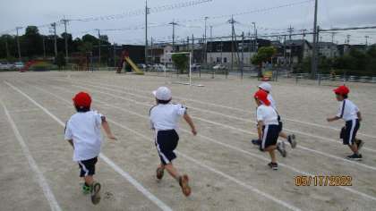 徒競走の練習にも熱が入ってきました。何回か練習するうち、並び順も頭に入ってきました。運動会本番で、一生懸命走りきるかっこいい姿を見せられるよう、更に練習に励んでいきたいと思います。