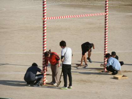 昨日は退場門を立てました。体育部以外の先生方も、自然にグランドに集まり自主的に作業をしてくれました。また、黙々と細かいグランドの草を丁寧に抜いてくれている職員の姿も見ることができました。高井小の教職員の「チームワーク」を随所に感じています。
