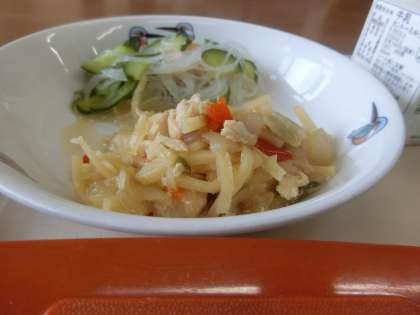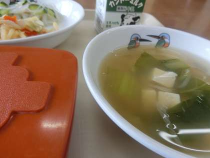 今日の給食です。今日は、普段はなかなか食べることができない【タイ】の料理でした。ガパオ・エビと春雨のスープ。どちらもとても美味しかったです。