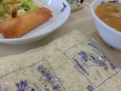 今日の給食です。外は雨模様ですが、給食を食べたら心も体もほっこりしました。