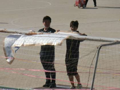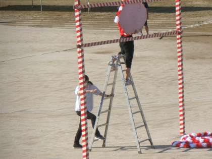 現在の様子です。朝早くから先生方が、運動会に向けての準備の仕上げをしています。心を込めて整備したグランド。とてもきれいです。絶好のコンディションです。