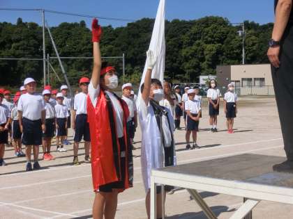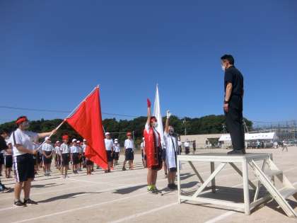 プレイバック運動会 2 公開日 2022/05/28 更新日 2022/05/28 児童の様子 開会式の選手宣誓。さすが6年生!堂々としていて、素晴らしい選手宣誓でした。運動会に対する強い決意と思いが伝わってきました。