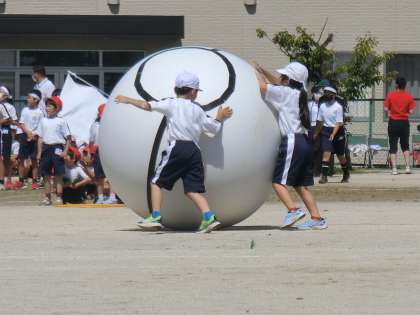 プレイバック運動会 5 公開日 2022/05/29 更新日 2022/05/29 児童の様子 2年生の団体種目。『大玉ゲットだぜ!』。大きな玉を小さな体で一生懸命押す姿が、とても可愛らしかったです。必死に頑張った2年生。素晴らしかったです。