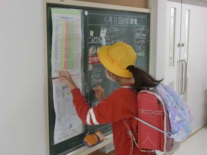 ☆給食委員の児童が、毎日今日の献立を黒板に記入してくれています。ありがとうございます。