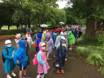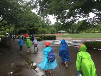 アンデルセン公園に予定通り到着しました。少々雨が降っていますが、みんなとても元気です。