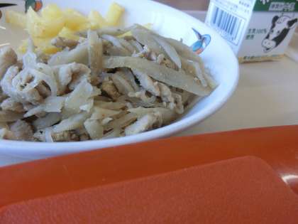 豚肉とゴボウの味噌炒め。味がしみていて、美味しかったです。