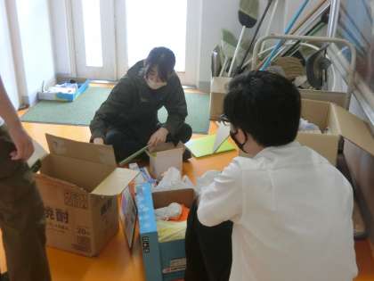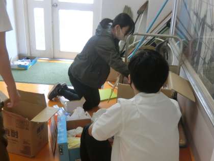 5年生が明日から宿泊学習に出発します。先生方が準備の最終確認をしています。