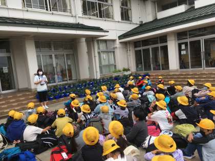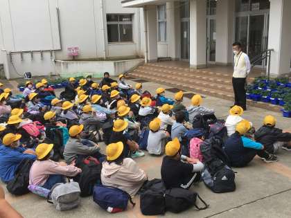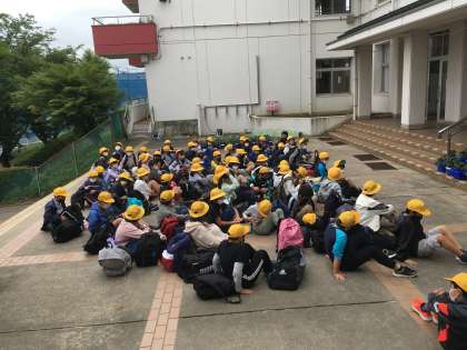 いよいよ5年生の宿泊学習のスタートです。出発式を行いました。全員出席です。