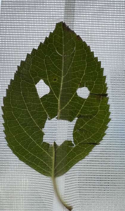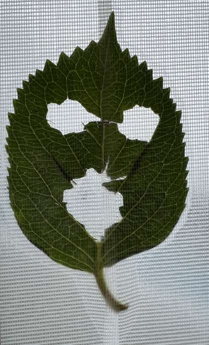 教室にアジサイが届きました。お花が届くと子どもたちも『綺麗だね』『もう梅雨だね』などと話しています。 届いたアジサイを花瓶にさすのに余計な葉っぱを落としていると、子どもが『1枚ちょうだい!』と言うので1枚渡すと、葉っぱの妖精を作ってくれました。