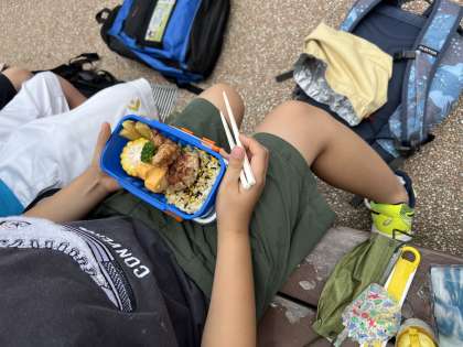 お家の方が朝早くから愛情いっぱいに作ってくれたお弁当を食べました。